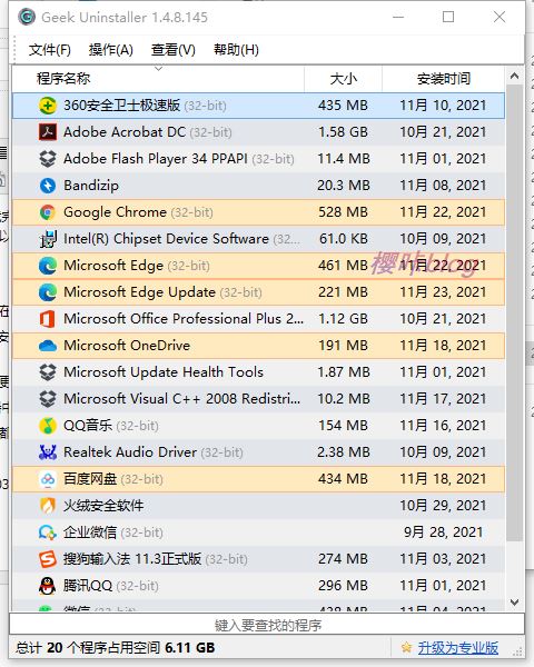 Geek Uninstaller 堪称卸载工具中的清道夫!无需安装,解压即用,卸载软件的同时自动扫描注册表残留,体积不到2MB却异常强悍,强烈推荐给追求系统清爽的电脑用户。